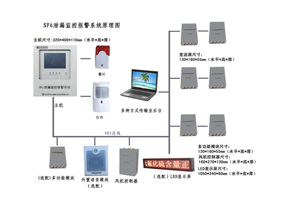 本系統可為廣泛應用于各種電壓等級的SF6開(kāi)關(guān)室、組合電氣室(GIS室)、SF6主變室等。